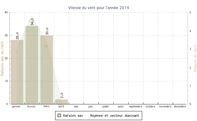 | fevrier | 0.9 °C | 5.3 °C | 19.3 °C | 13.8 °C | 9.6 °C | 4.8 km/h | 34.0 km/h | SSO |