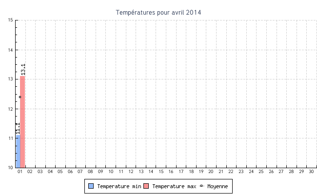 | 01 | 11.1 °C | 13.1 °C | 12.4 °C | 0.2 km/h (2.0 km/h) | NNO |